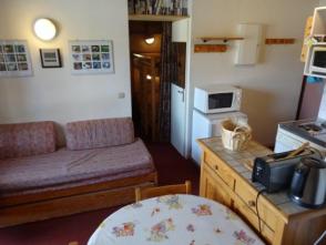 L appartement comporte une chambre fermée avec 2 lits simples et un lit gigogne, une pièce salon cuisine avec un canapé lit et une mezzanine avec un lit deux places en 160.