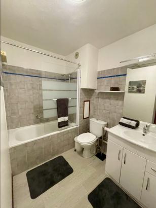 Cuisine équipée : plaque à induction, four/grill, micro ondes... et salle de bains avec baignoire/douche et WC. Local à skis à côté de l’appartement
